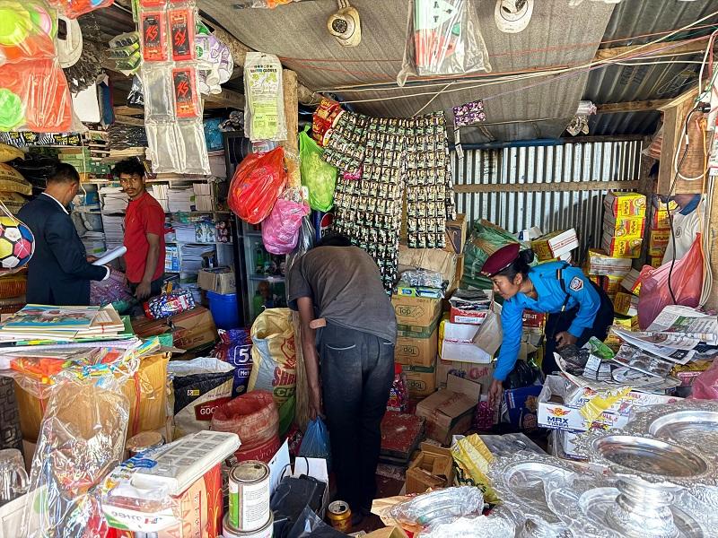 अनुगमन टोलीले मानेभन्ज्याङका पाँच वटा किराना पसल, तीन वटा कस्मेटिक पसल र सात वटा होटलको अनुगमन गरेको हो । अनुगमन टोलीले म्याद गुज्रिएका ५५ वटा पेप्सी, १३४ वटा डिउ, ५ पिस चिप्स, ४०० पिस ललिपप, ४२ थान साबुन, ५ बोतल भेनेगर जफत गरेर नष्ट गरेको छ ।